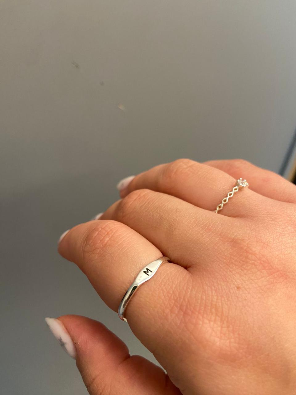 Adicione um toque personalizado e sofisticado ao seu visual com o Anel de Prata 950, de 2mm, adornado com uma letra.